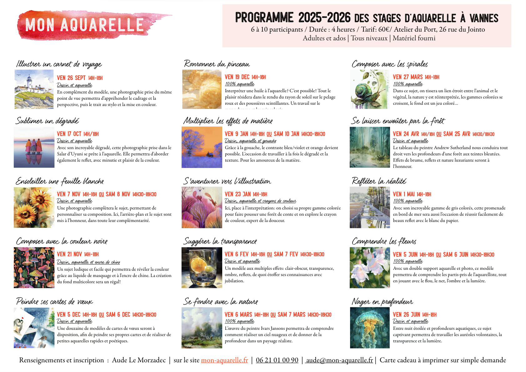 Pour la durée, les dates, les horaires et les tarifs, me consulter...